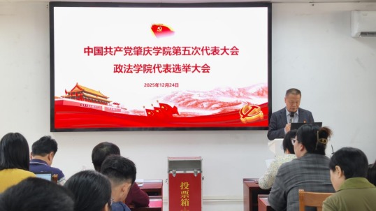 12月24日,政法学院召开全体党员大会,选举产生出席中国共产党肇庆学院第五次代表大会的政法学院党员代表。会议由学院党委书记张滔华主持,全体正式党员参加会议。会前,学院党委严格按照选举工作相关要求,精心组织、周密部署,通过广泛征求意见、充分酝酿讨论、严格审查把关等程序,确定代表候选人预备人选并报学校党委批复同意,为选举工作顺利开展奠定了坚实基础。大会依照程序依次审议并通过了监票人、计票人建议名单及《中国共产党肇庆学院第五次代表大会代表选举办法》...