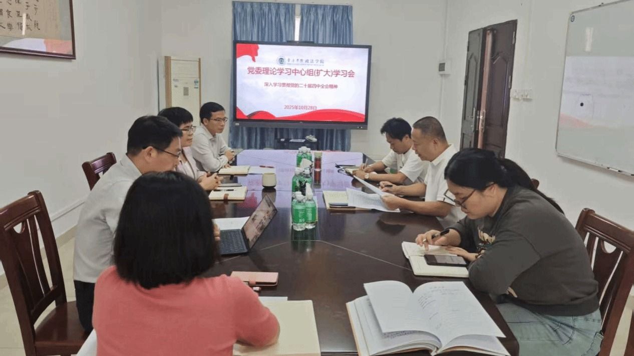 10月28日,政法学院党委召开理论学习中心组(扩大)学习会,专题学习专题学习党的二十届四中全会精神。会议由学院党委书记张滔华主持并作领学发言。