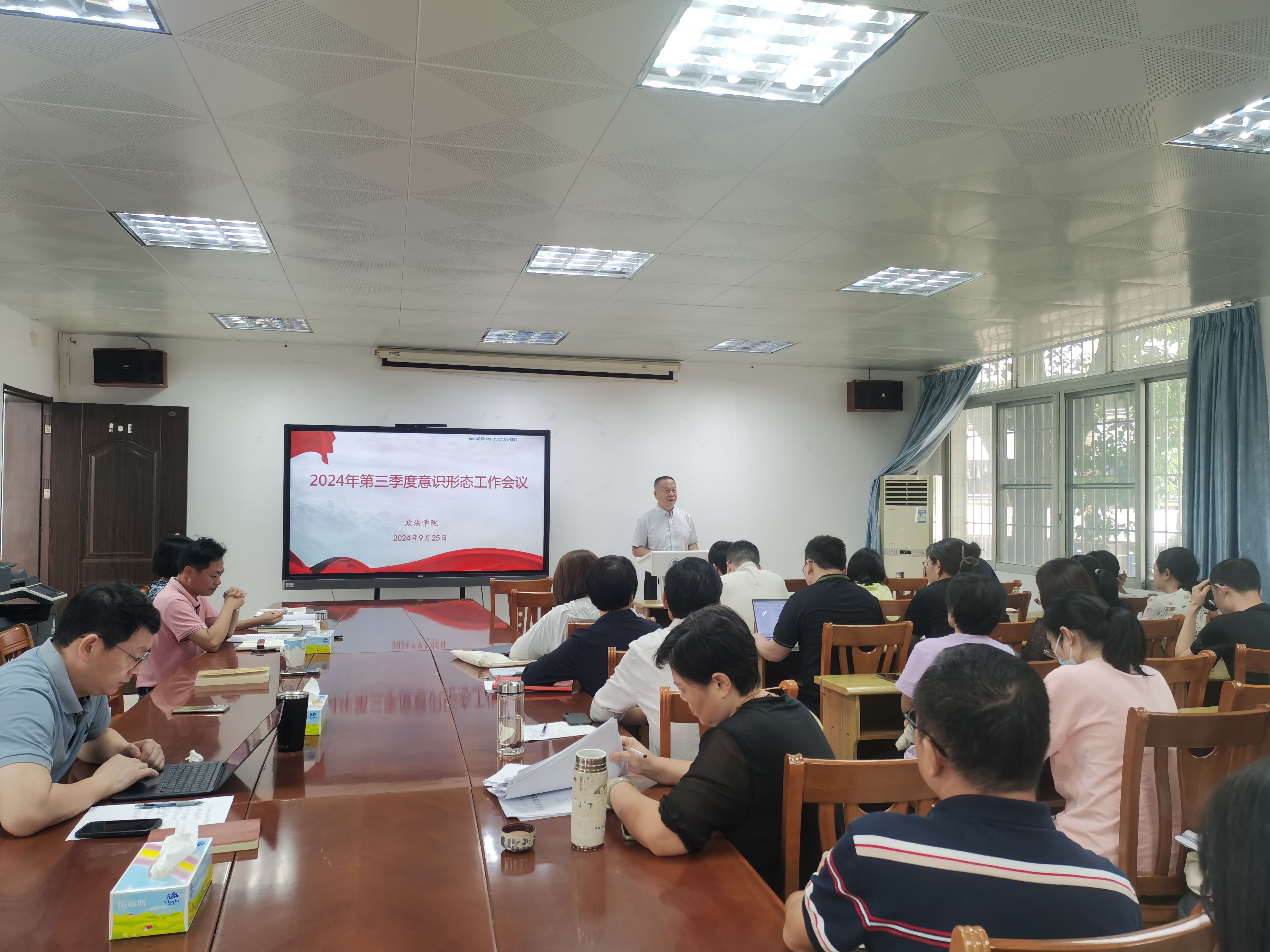 9月25日,政法学院召开意识形态工作会议,会议由学院党委书记张滔华主持,全体教职工党员参加。