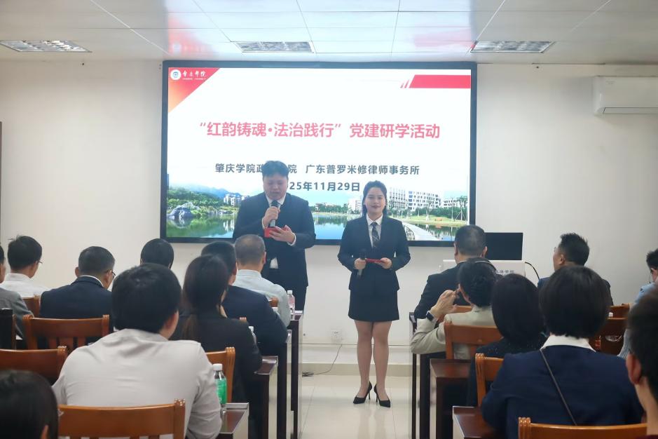 11月29日,我院与广东普罗米修律师事务所联合举办“红韵铸魂•法治践行”党建研学活动。本次活动紧扣“实务导师引领实践、涉外讲座开拓视野”的核心主题,作为双方共建涉外法律人才培养基地后的首场专业活动,标志着院所协同育人机制迈入新阶段。