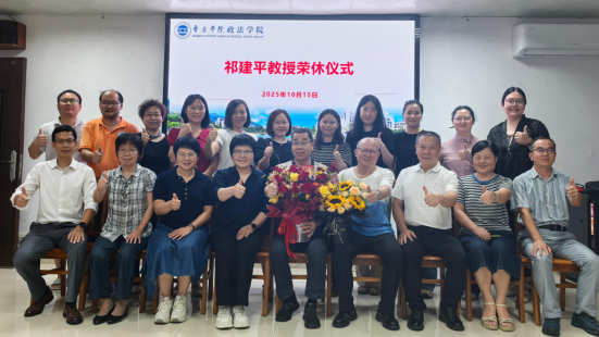 本网讯 10月15日下午,政法学院为祁建平教授举行荣休仪式。学院党委书记张滔华、院长许英、副院长汪聂才及全体教职工共同出席,共同见证这一温情时刻。