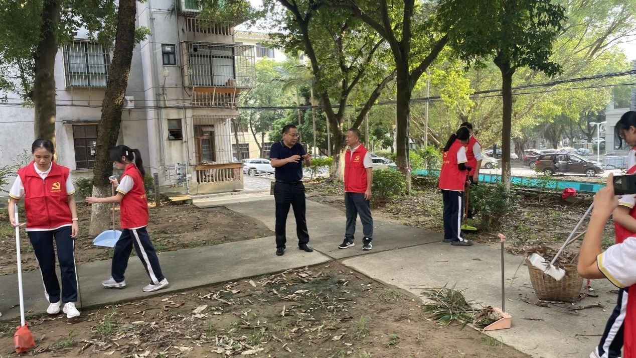 活动中,志愿者们分工协作,重点对体育馆广场周边及北苑教工宿舍区东侧绿地进行集中清理。大家认真清扫落叶、纸屑等垃圾杂物,并细致排查花盆托盘、废弃容器等易积水点位,从源头上防范蚊虫滋生。学院领导带头参与,与师生一同投入劳动,确保卫生清理无死角、全覆盖。
