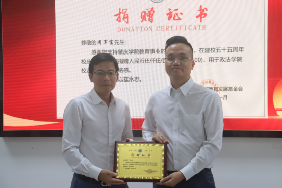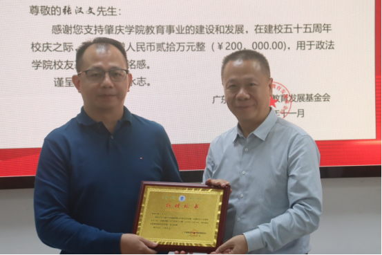 时值肇庆学院55周年华诞,政法学院校友重返母校,共叙情谊、共谋发展。11月15日下午,政法校友基金捐赠仪式暨校友分会揭牌仪式在学院内隆重举行。