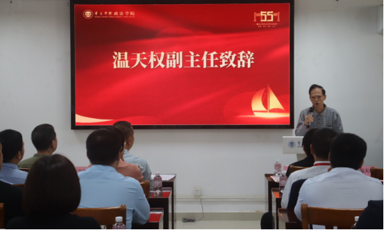 政法系原副主任温天权亲临现场,以深厚的教育情怀寄语学院发展。他聚焦高质量发展,期望学院广泛借鉴国内外先进经验,为推动法治人才培养事业贡献智慧。温主任的句句嘱托,饱含着对政法学院的深切关怀与殷切期望。