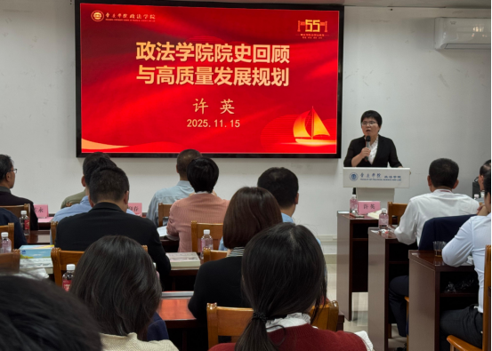 政法学院院长许英作主旨发言,系统回顾学院发展历程,总结近年来在学科建设、人才培养与科学研究等方面取得的成果。她明确了学院未来发展目标,提出以学科融合补齐短板,推动高质量发展,并强调将坚持“入主流,办特色,创一流”的办学方向,走出一条具有政法特色的发展道路。