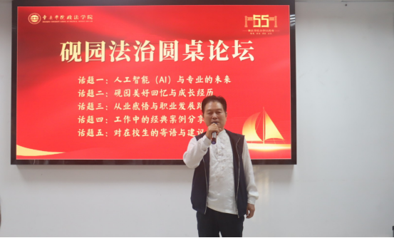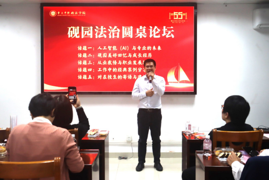 作为肇庆学院办学55周年高质量发展大会政法学院分会场的重要活动,“砚园政法圆桌论坛”于校庆期间成功举办。论坛聚焦“人工智能与专业未来”“砚园回忆与成长”“从业感悟与职业路径”“经典案例分享”“在校生寄语建议”五大议题,搭建起校友与师生深度对话的高层次平台,围绕法治前沿、实践智慧与人才成长展开交流,为学院学科建设与人才培养注入新动能。