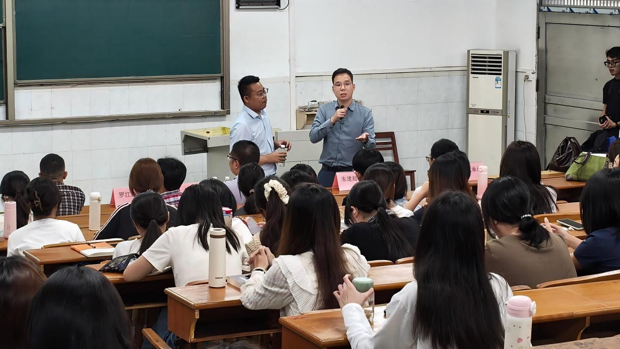 2015届校友、广东金桥百信律师事务所执业律师宣承永,结合自身在校学习与执业成长的经历,从听课效率、专业阅读、法考备考、综合素养提升等六个关键方面,为同学们带来了细致入微的分享。他着重强调,在校期间是夯实专业基础的黄金时期,既要认真钻研课堂知识、主动与授课教师沟通交流,筑牢法学理论根基,也要注重综合素质的全面提升,锤炼逻辑思维、表达能力与协作能力,不断增强自身的核心竞争力。同时,他鼓励有条件的同学积极报考研究生,认为读研不仅是提升学历层次的重要途径,更是督促自己持续学习、拓宽视野、深耕专业的有效方式。